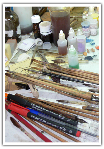 Working for so many decades Mr. Mário is able to supply you with all the materials needed for hand painting classes. From brushes to pigments, from oils to precious metal paints, all will be available if you need. Order in advance since some items take longer to get.